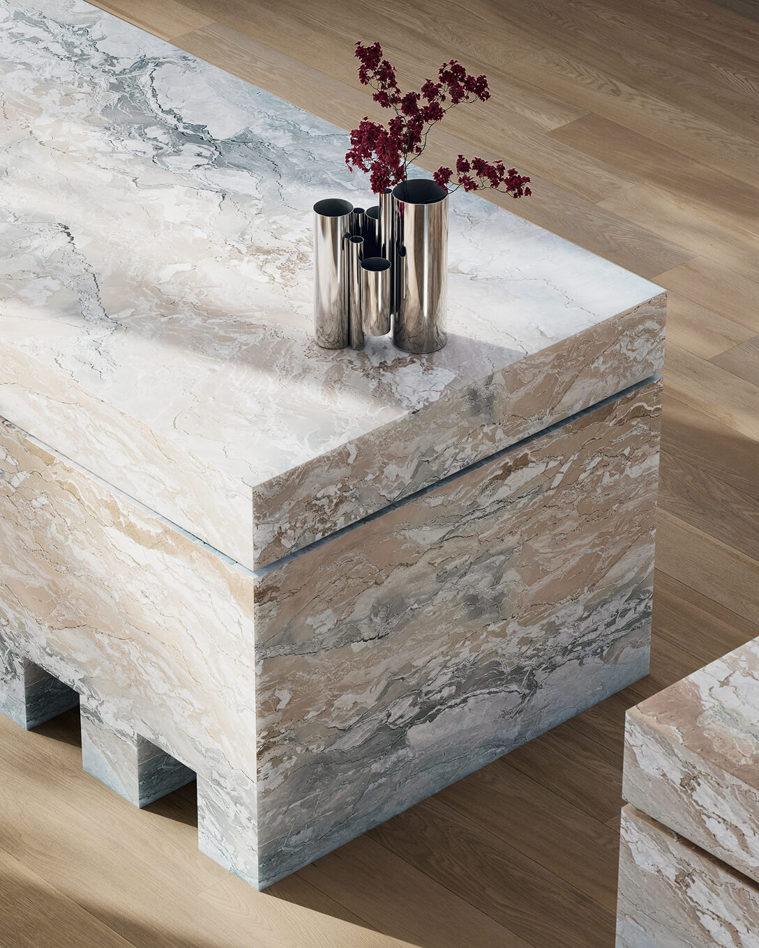 Stone kitchens become a focal point for gathering, crafted with equal regard for form and function. Curved joinery and tonal surfaces bring visual rhythm, while textured finishes introduce quiet interest throughout.
