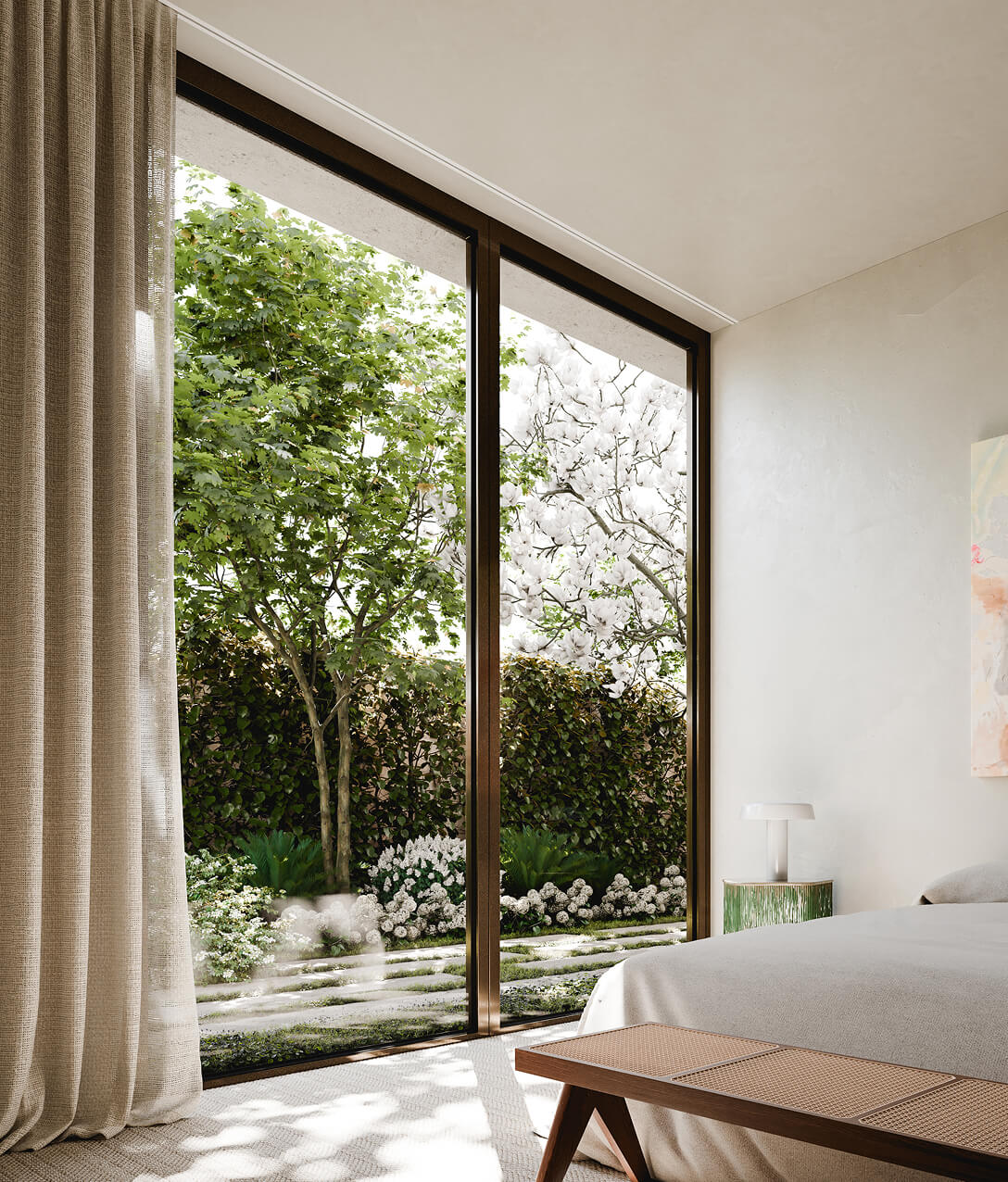 The façade presents with quiet confidence – refined, rhythmic, and built with a sense of permanence. Stepping inside, the energy of the street gives way to stillness. Texture, light, and landscape frame the experience, creating a clear sense of arrival and a feeling of home that unfolds gently, yet immediately.