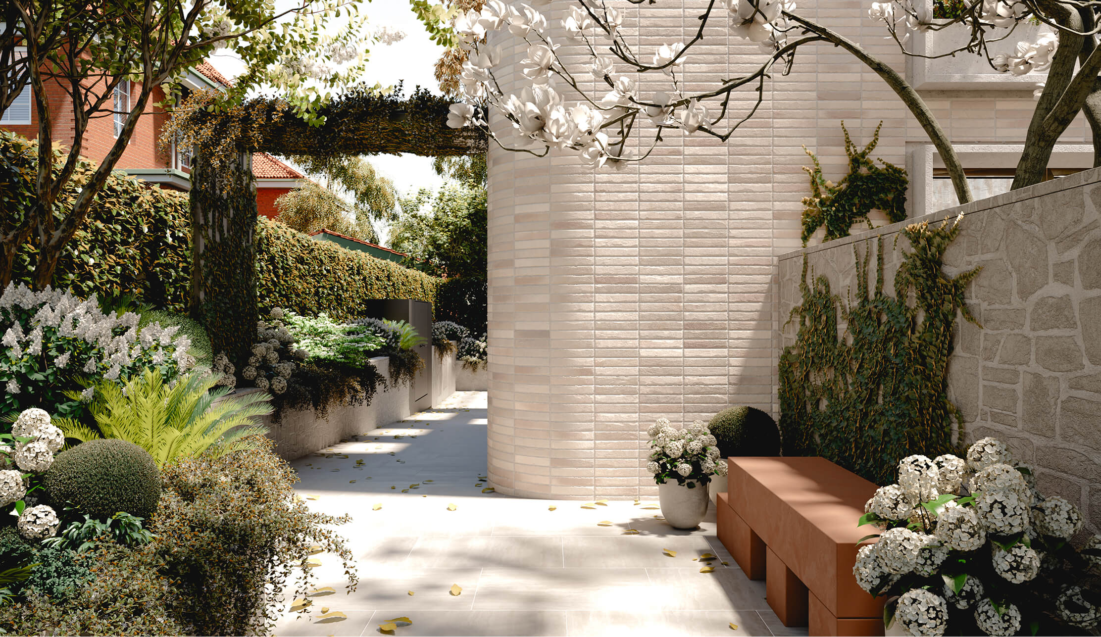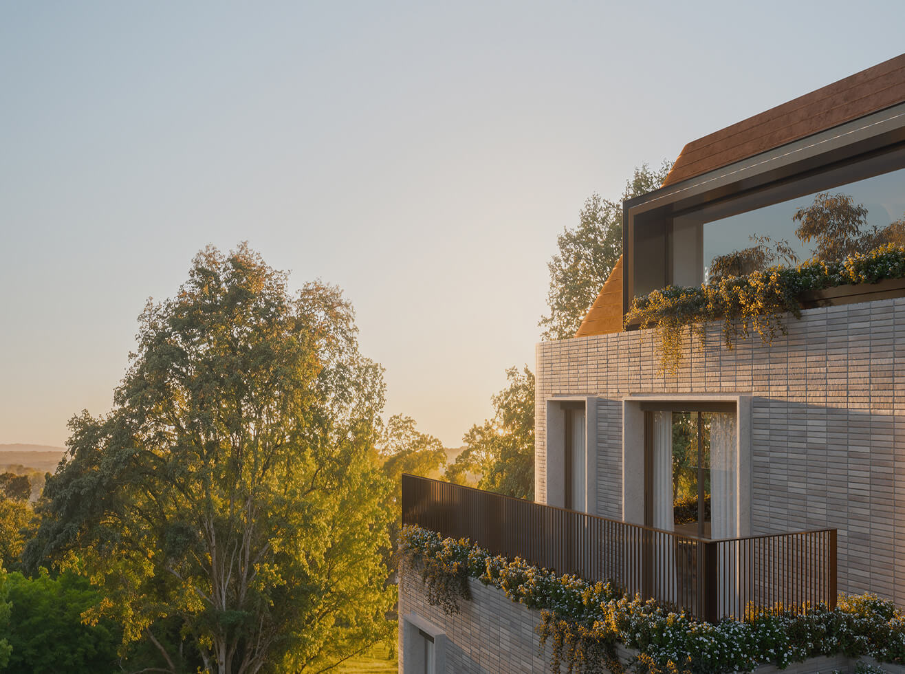 The planting strategy creates a quiet dialogue with the neighbouring Kooyong Gardens, echoing its natural rhythm and extending the experience of greenery. Views, textures, and seasonal changes are designed to feel continuous across the boundary.