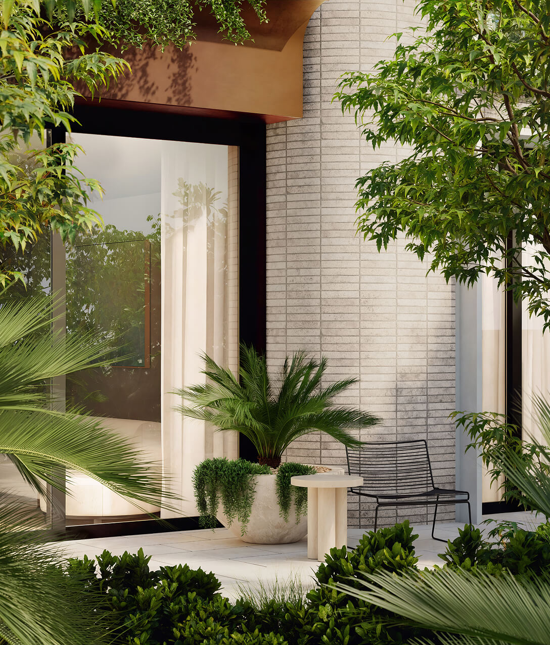 Elegant planters are integrated across terraces and balconies to shape outlooks and buffer space. Whether glimpsed through a window or stepped into directly, every garden moment adds calm and continuity to the home. This visual rhythm connects each residence to the broader landscape.